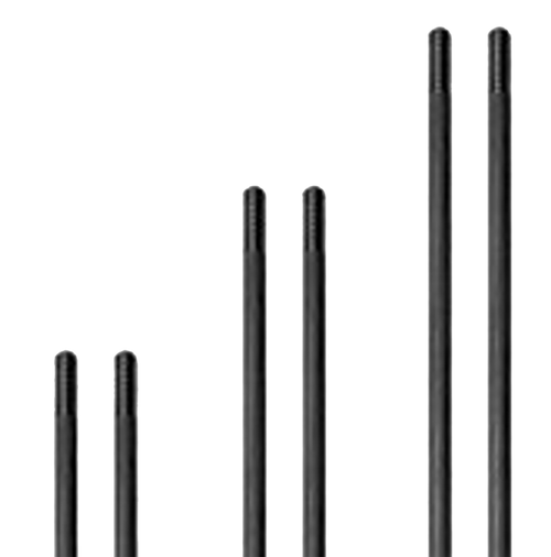 Assembly rod kit for the Victra-12 modular shotgun suppressor, consisting of a pair of 12-inch rods that hold baffle stacks together. Made from 17-4 stainless steel with a natural stainless finish, these rods allow reconfiguration of the suppressor to multiple lengths (12", 10", 8", 6"). The rods measure 0.1875" in diameter and are essential components for maintaining suppressor integrity across different configurations.