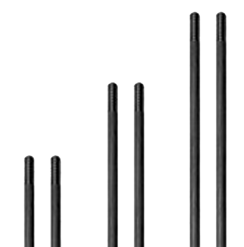 Assembly rod kit for the VICTRA-12 modular shotgun suppressor, allowing configuration to multiple lengths (6", 8", or 10"). Made from 17-4 stainless steel with black matte finish, the kit includes one pair each of 6", 8", and 10" rods. Changing rod lengths adjusts both the suppressor's overall length and its sound suppression performance.