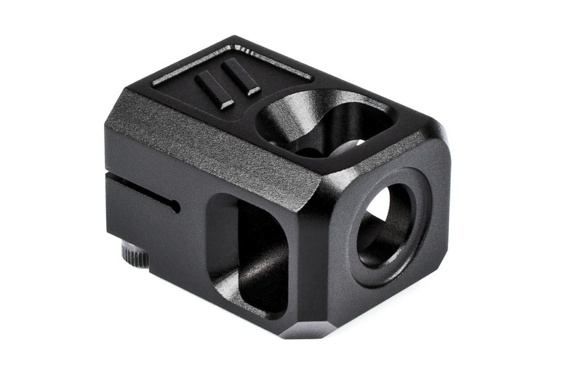 The ZEV Pro Compensator V2 is a precision-engineered muzzle device designed for 9mm handguns with 1/2x28 threaded barrels. Constructed from aluminum with a durable anodized black finish, this compensator threads directly onto compatible barrel muzzles to reduce recoil and muzzle rise. Features a one-year manufacturer's limited warranty and is proudly manufactured in the USA.