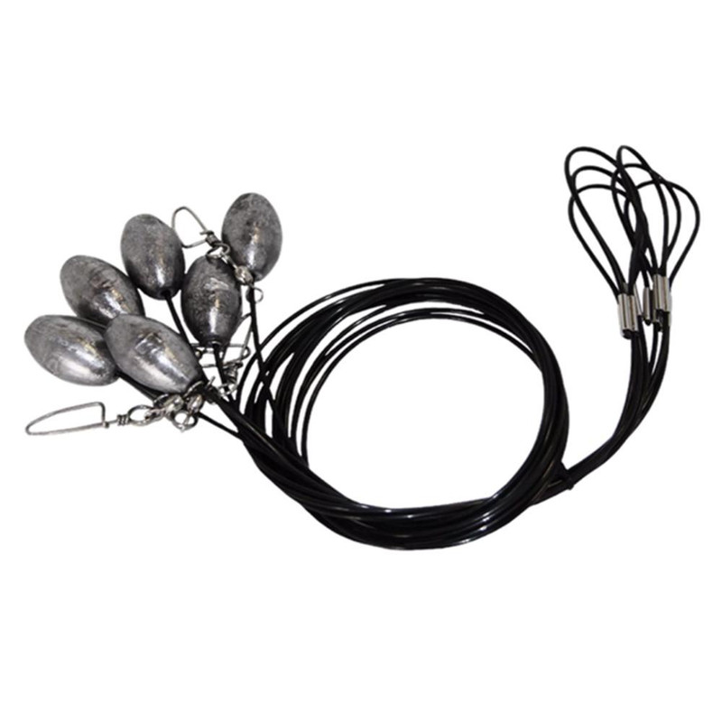 Duck decoy rigging system featuring 36" lines with 600-lb. test strength and 6-oz. weights for quick deployment and retrieval. Each rig includes a large swivel and integrated D-ring for easy attachment to decoys and transport to the marsh. Sold as a 6-pack.