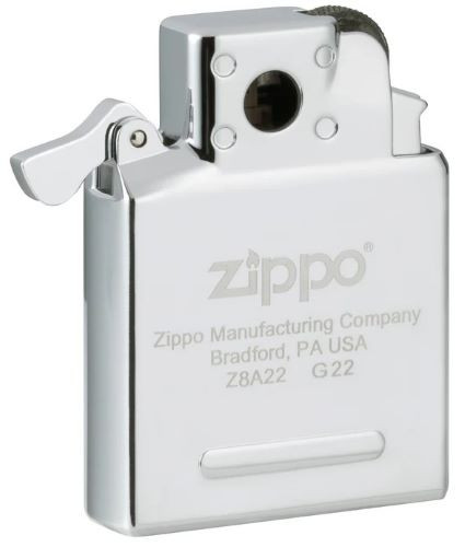 This butane lighter insert is designed for use with Zippo pipe lighters and features a yellow flame ignition system. It serves as a replacement or upgrade component for emergency fire-starting applications in survival kits. The butane-powered design provides reliable ignition in various outdoor conditions.